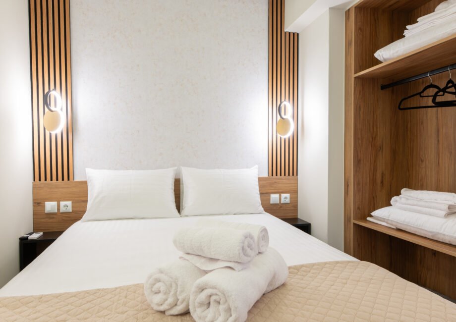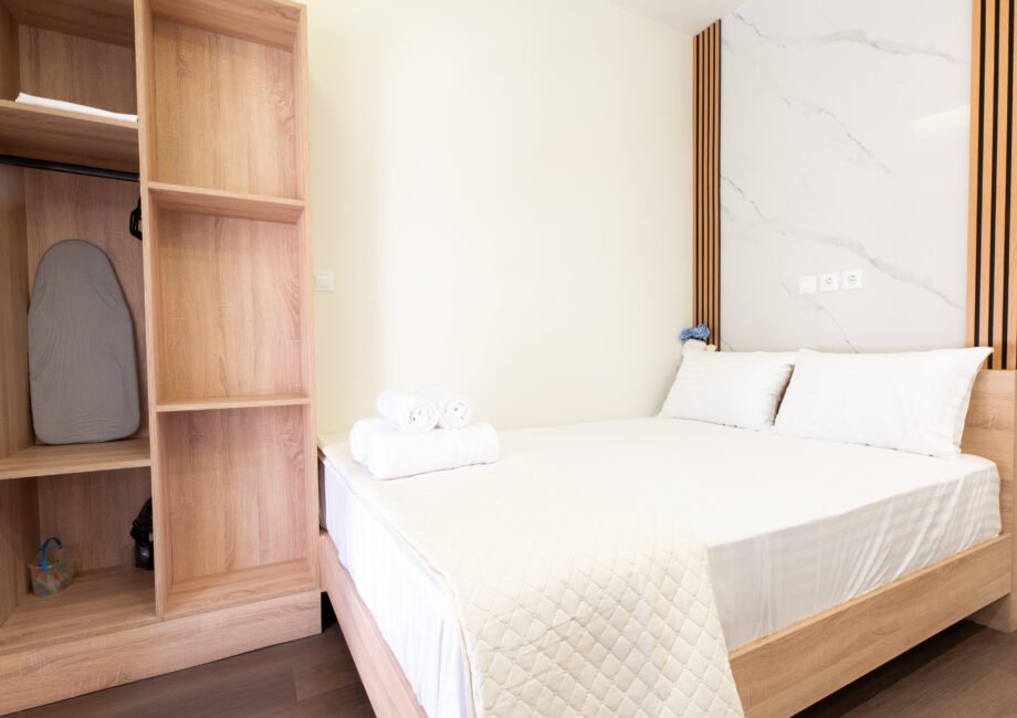 Το διπλό κρεβάτι με ανατομικό στρώμα και τα πουπουλένια μαξιλάρια υπόσχονται έναν ευχάριστο ύπνο, ο κρυφός φωτισμός σας προσφέρει στιγμές ηρεμίας και χαλάρωσης!Στον χώρο υπάρχει άνετη ντουλάπα με κρεμάστρες για να οργανώσετε τα ρούχα σας,σιδερώστρα και σίδερο ρούχων.
