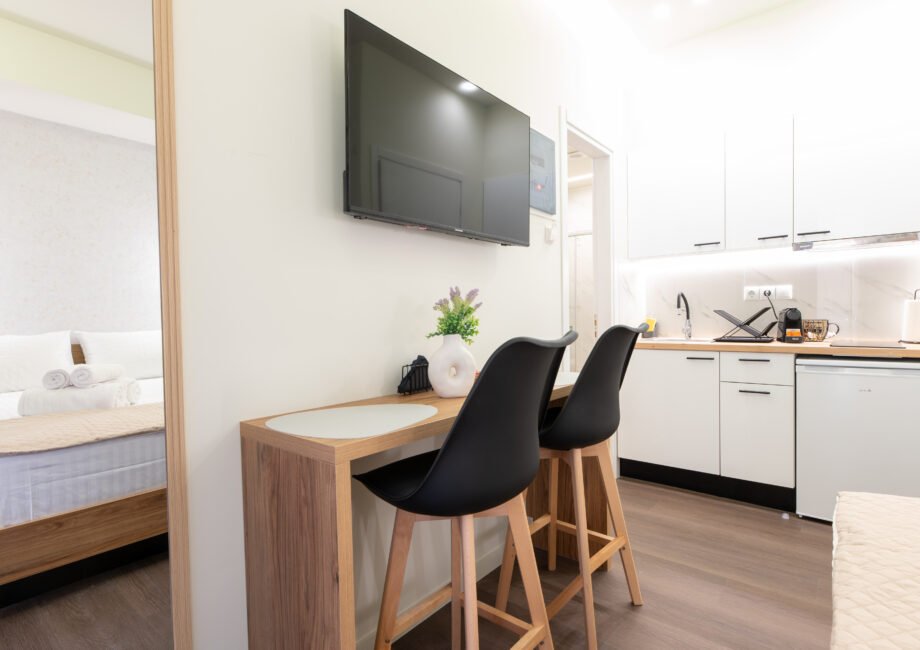 Και για να ξεκινήσει η ημέρα σας όμορφα, σας προσφέρουμε εντελώς δωρεάν σνακ και ροφήματα όπως φρυγανιές, μαρμελάδα, μπισκοτάκια, καφέ εσπρέσο, καφέ, τσάι και χαμομήλι όλα στη διάθεσή σας με ένα ζεστό καλωσόρισμα! Αυτό το διαμέρισμα είναι ιδανικό για όσους αναζητούν μια λειτουργική και πλήρως εξοπλισμένη κατοικία, σε έναν μικρό αλλά πανέμορφο χώρο, που προσφέρει άνεση, ιδιωτικότητα και όλα όσα χρειάζεστε για μια ευχάριστη και ανεξάρτητη διαμονή.