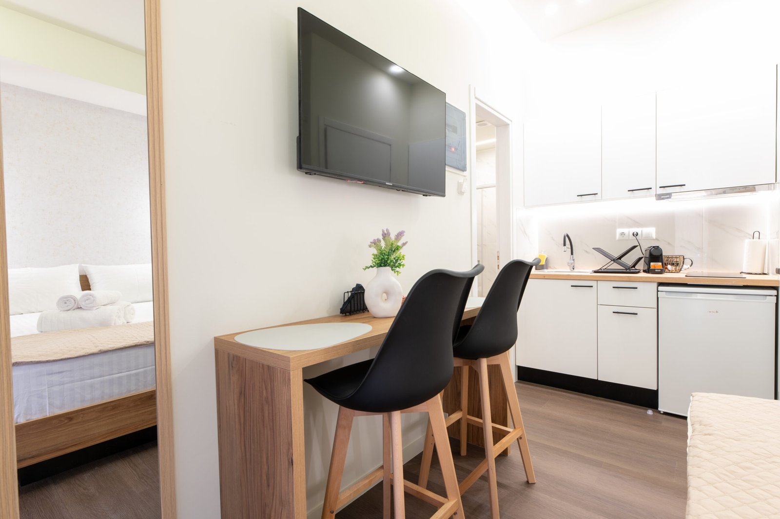 Καλώς ορίσατε στο Modern Rooms Pagrati.Ένα μικρό στολίδι σχεδιασμένο για να σας προσφέρει άνεση και ζεστασιά, με όλα όσα χρειάζεστε για μια άνετη και ευχάριστη διαμονή. Εδώ θα νιώσετε σαν στο σπίτι σας, ακόμα και μακριά από αυτό. Στον χώρο διατίθεται δωρεάν Wi-Fi, Smart TV με πρόσβαση σε Cosmote TV, ώστε να πολαμβάνετε τις αγαπημένες σας ταινίες, σειρές και κάθε στιγμή χαλάρωσης. Ανακαλύψτε την απόλυτη άνεση και λειτουργικότητα σε αυτό το όμορφο διαμέρισμα 20 τετραγωνικών μέτρων, σχεδιασμένο για να καλύψει κάθε σας ανάγκη κατά τη διάρκεια της διαμονής σας. Ο ενιαίος χώρος αποπνέει ζεστασιά και πρακτικότητα, συνδυάζοντας με άψογο τρόπο το καθιστικό, το υπνοδωμάτιο και την κουζίνα, δημιουργώντας ένα φωτεινό και ατμοσφαιρικό περιβάλλον. Στον χώρο υπάρχει ένας άνετος καναπές που μετατρέπεται εύκολα σε διπλό κρεβάτι! Η κουζίνα είναι πλήρως εξοπλισμένη με σύγχρονες ηλεκτρικές συσκευές όπως εστίες μαγειρέματος, ψυγείο, τοστιέρα , καφετέρια και βραστήρα καθώς και όλα τα μαγειρικά σκεύη όπως κατσαρόλα,τηγάνι, πιάτα, μαχαιροπίρουνά, κουτάλια, ποτήρια νερού, κρασιού και φλιτζάνια για να απολαμβάνετε τον καφέ σας , έτσι μπορείτε να ετοιμάσετε από ένα γρήγορο πρωινό μέχρι ένα πλήρες γεύμα με ευκολία.