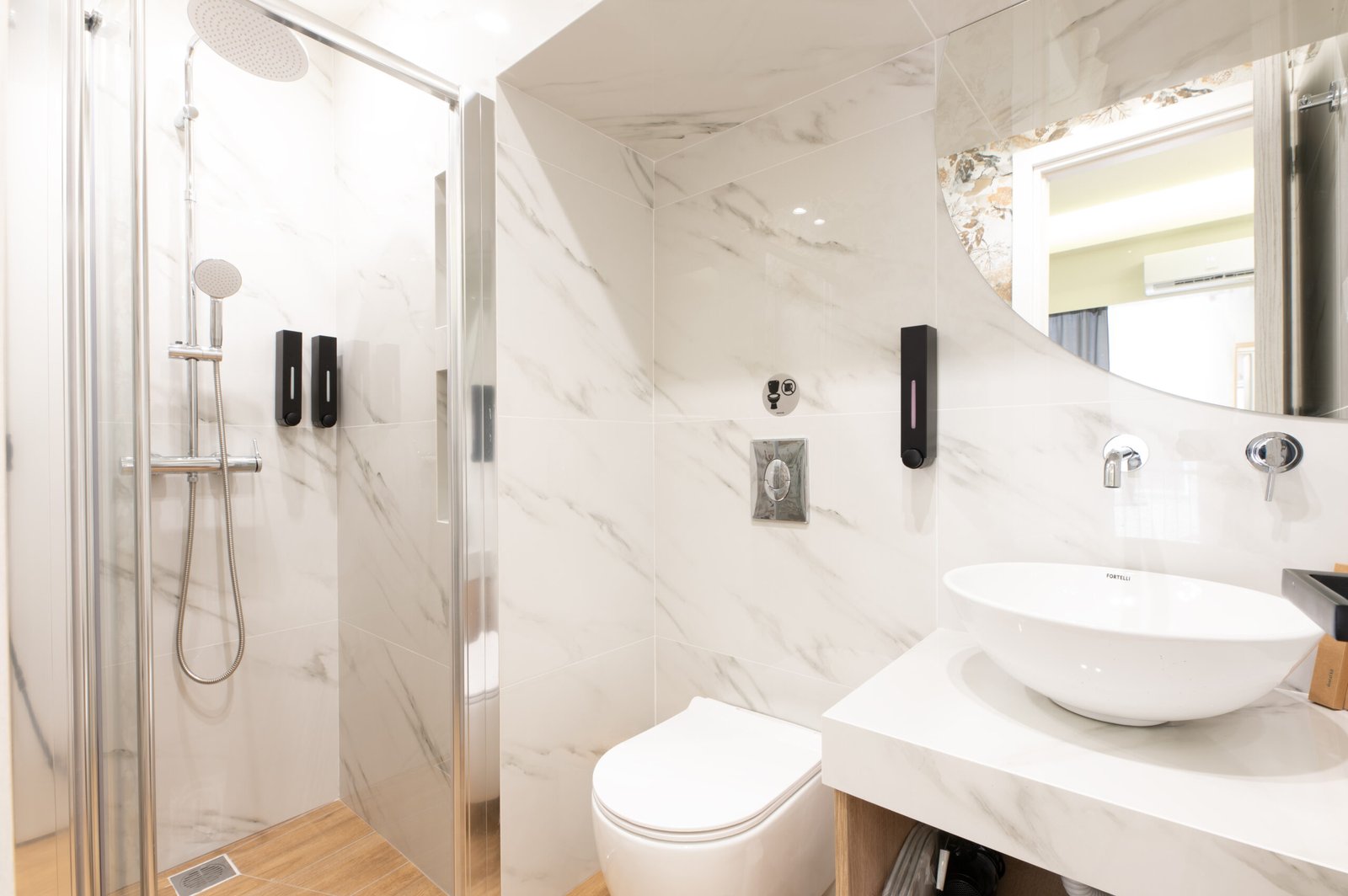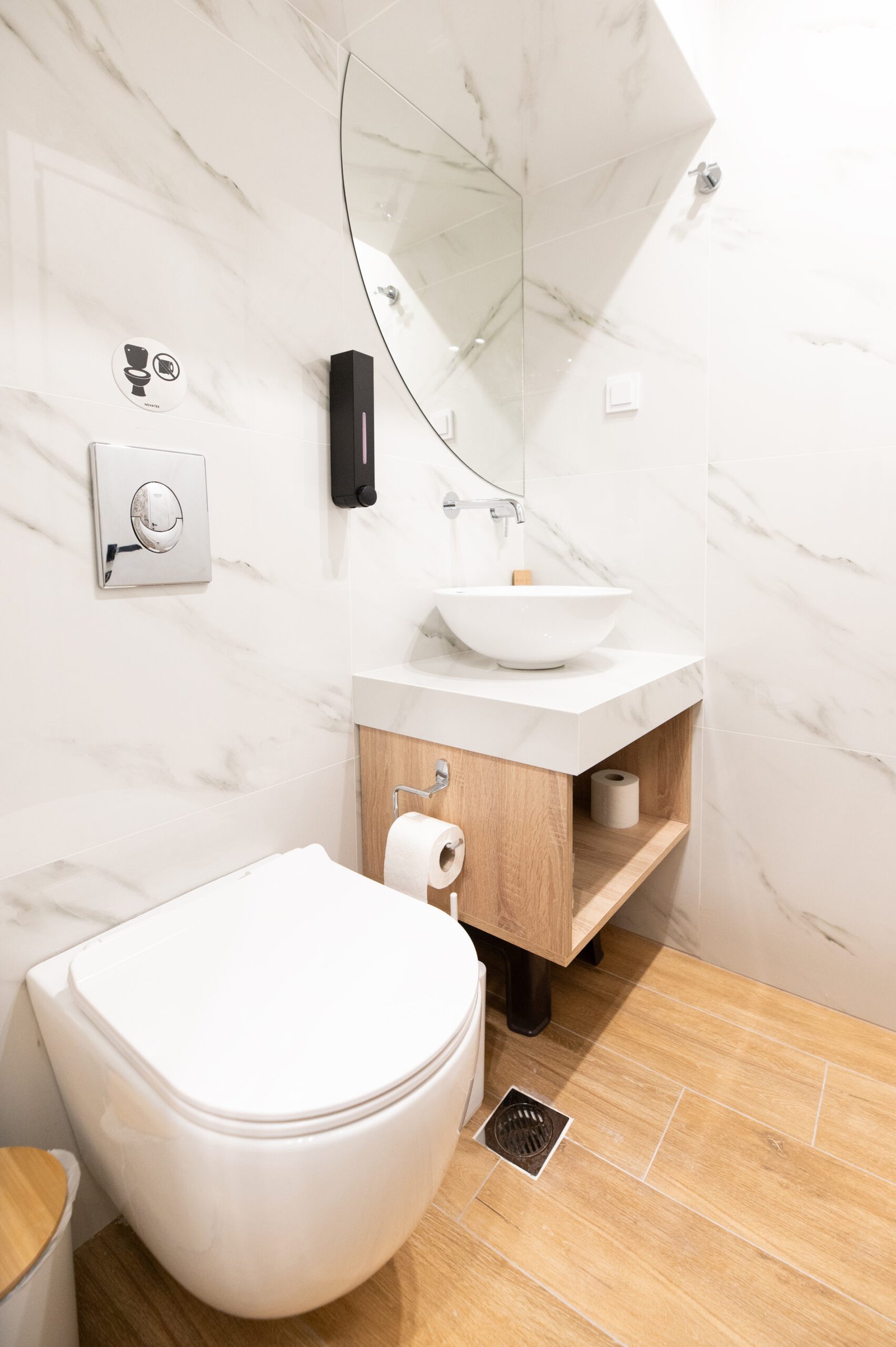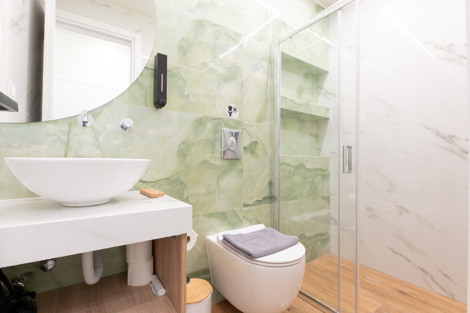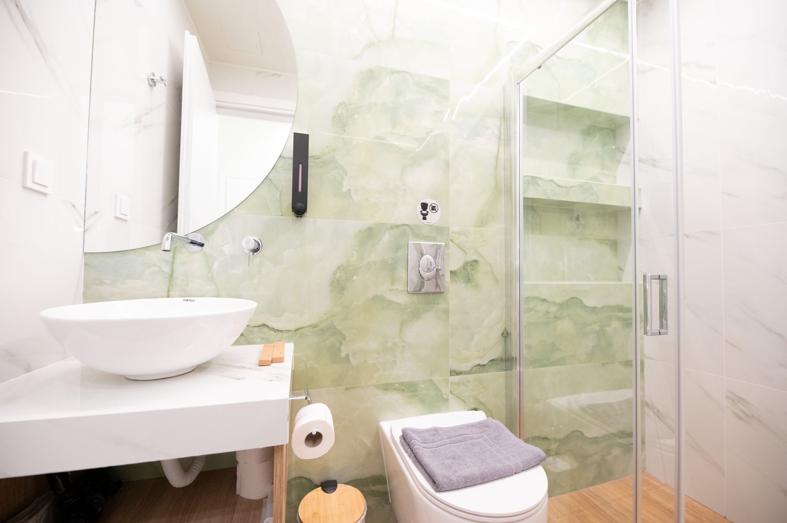 Το μπάνιο, με τον κομψό και λειτουργικό του σχεδιασμό, προσφέρει όλα όσα χρειάζεστε για να φροντίσετε τον εαυτό σας, με καθαρές και σύγχρονες εγκαταστάσεις που εξασφαλίζουν άνεση και ευχάριστη χρήση. Θα βρείτε βαμβακερές, αφράτες πετσέτες για την απόλυτη άνεσή σας, σεσουάρ μαλλιών, καθώς και προϊόντα προσωπικής φροντίδας όπως σαμπουάν, αφρόλουτρο και οδοντόβουρτσες μιας χρήσης. Για τη μέγιστη άνεσή σας, το διαμέρισμα παρέχει επίσης παντόφλες μιας χρήσης.